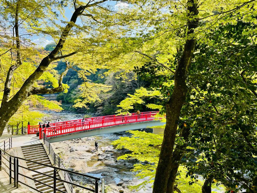 これまた綺麗な新緑に赤い橋がいいですね(^.^)