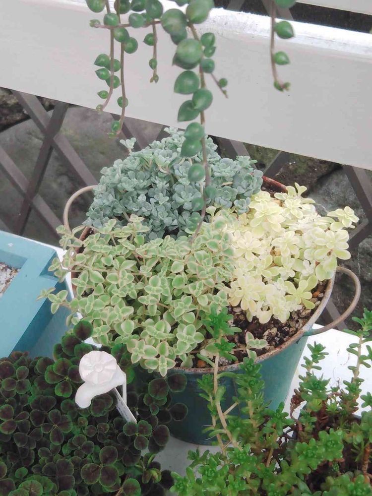 白いフェンスの台で、セダムがふっくらしてきました🌱