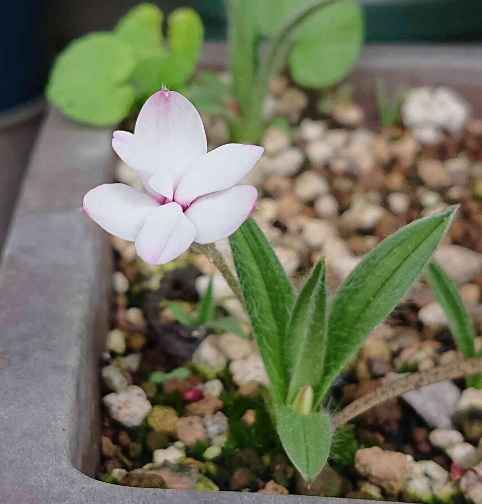去年1鉢に白とピンクのアッツザクラが混在していて白が少なくなって来たのとヒゲのあるスミレが生えてきたので