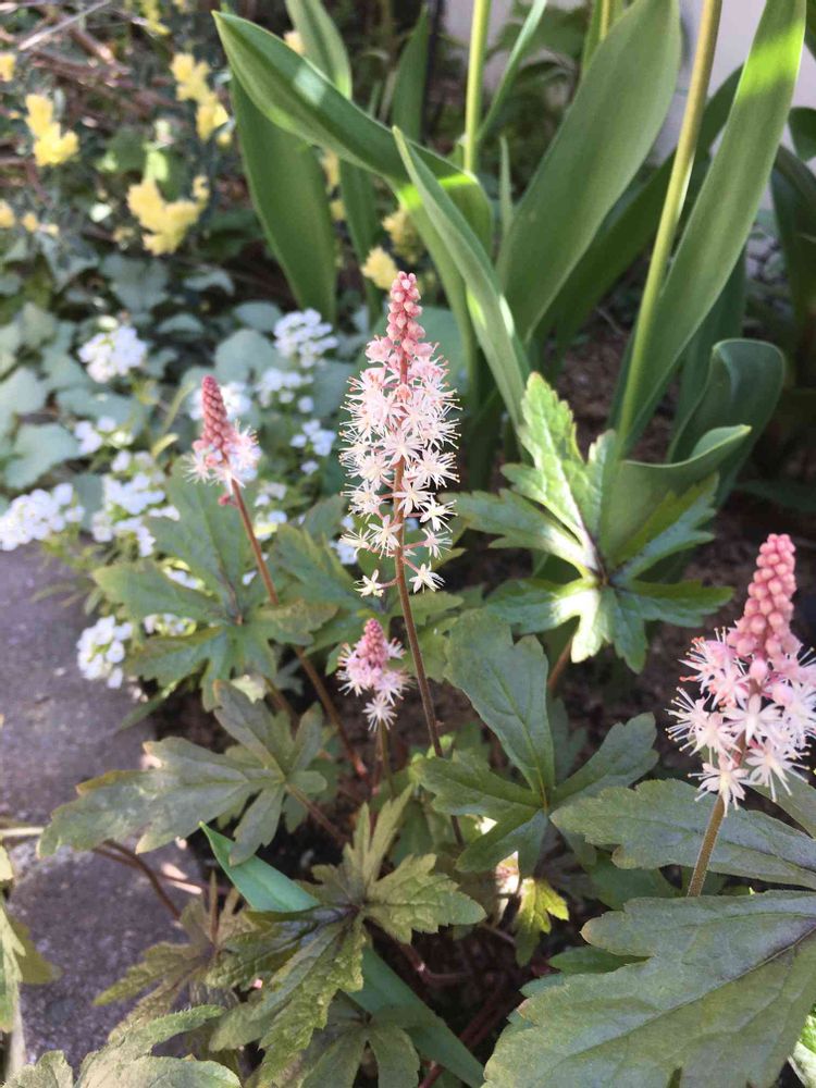 このお花、ヒューケラとは親戚のような植物らしく、日陰、半日陰、OKみたいですよ💕