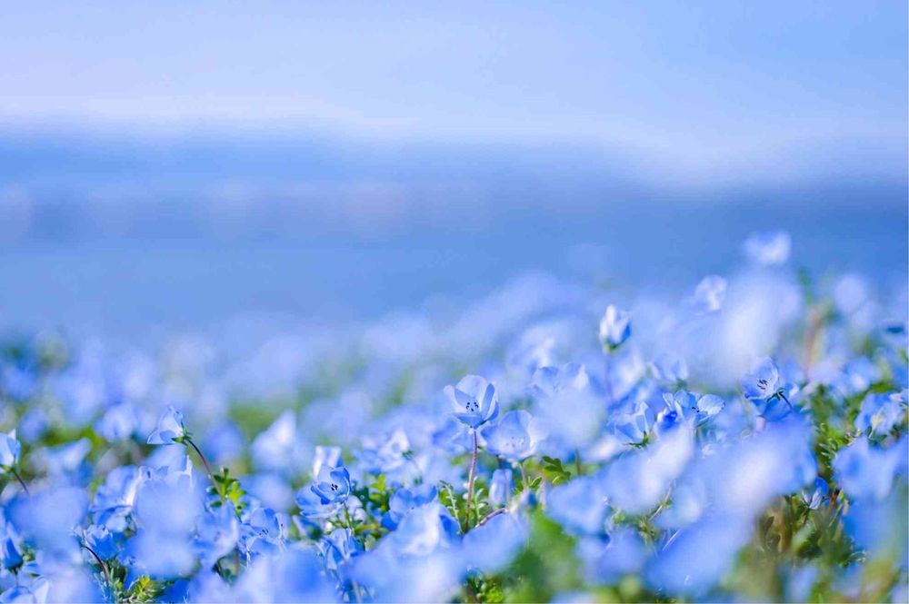 背景ぼかしても空と海とネモフィラの三重奏のブルー景色は爽快です…♡♡