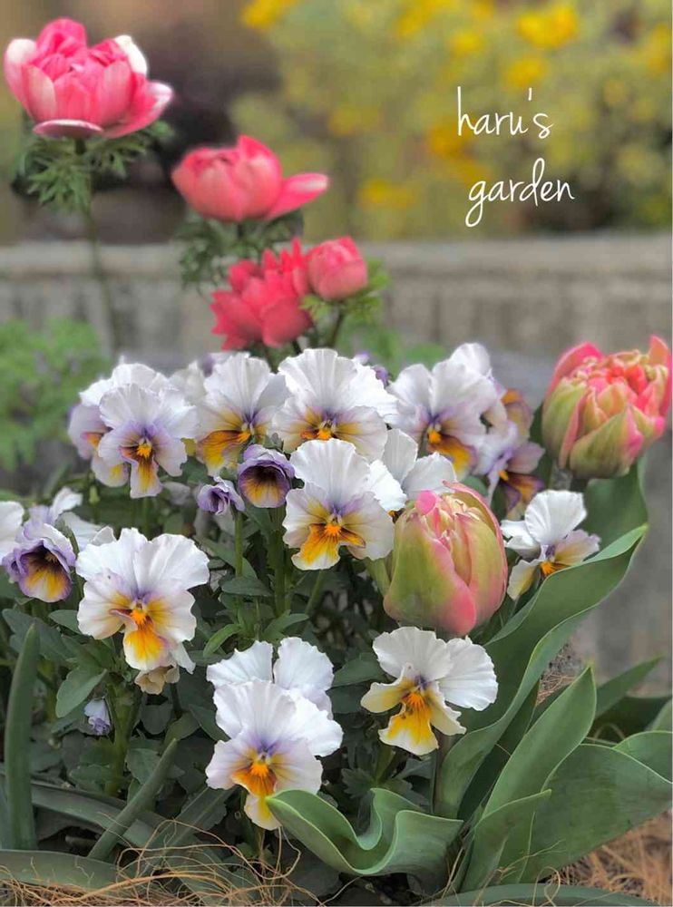アンアリスとチューリップ、ビオラのコラボ素敵🌸八重のチューリップ可愛いですね。3年程前に植えたけど球根掘り起こさなかったから消えてなくってました🤣珍しいものはデリケートなんかな?