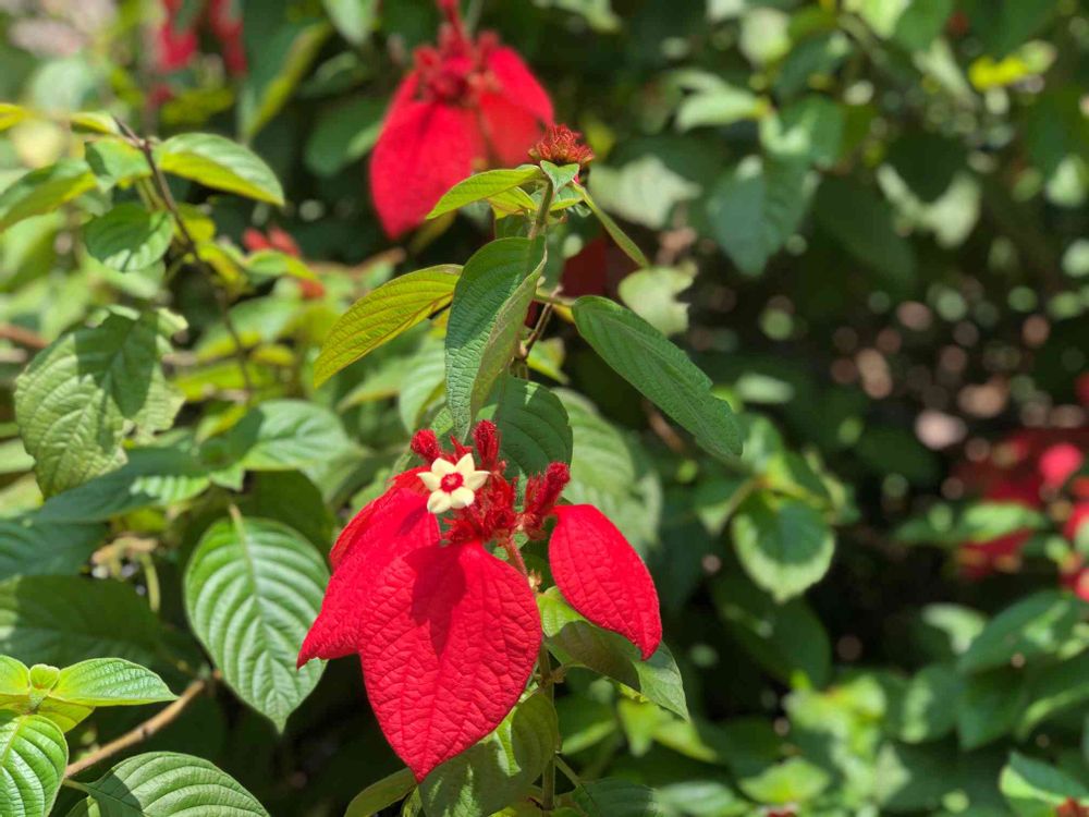 コンロンカ💗以前見せて頂いたお花はピンクでしたね✨✨赤いお花も素敵です😍真ん中の白くてちっちゃいお花もまた可愛いいですね😆日本のポインセチアと少し似ていていい感じです🥰