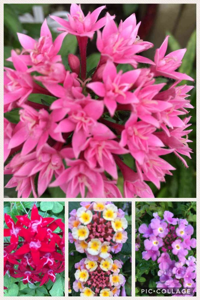 裏庭に春からずっと咲き続けているペンタスさんとランタナさん🌼🌸