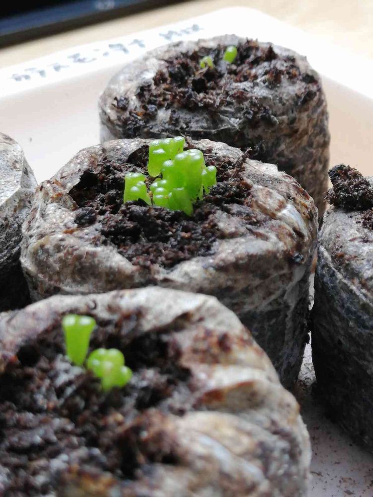 種まき用のジフィーに衝動的に蒔いてみたら、思いのほか発芽率が良く💦