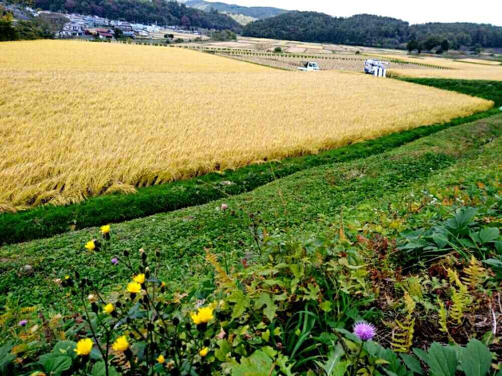 黄金色の稲と秋を彩る草花、素敵なpicですね。