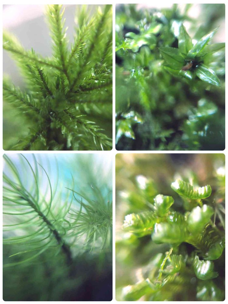 左上コウヤノマンネングサ、右上コツボゴケ、左下ヒノキゴケ、右下ムチゴケ!