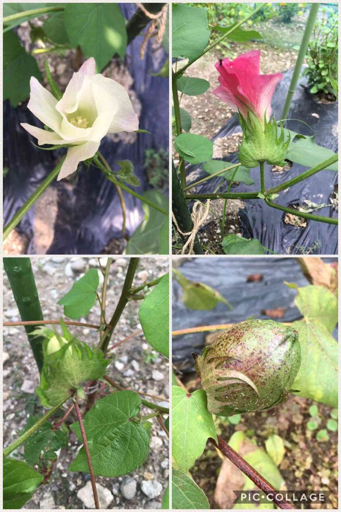 先日投稿したコットンのピンクの花の蕾から実までです😊左下から時計まわりにみてください。この実がもうすぐはじけてコットンがあらわれるはずなのですが🤗