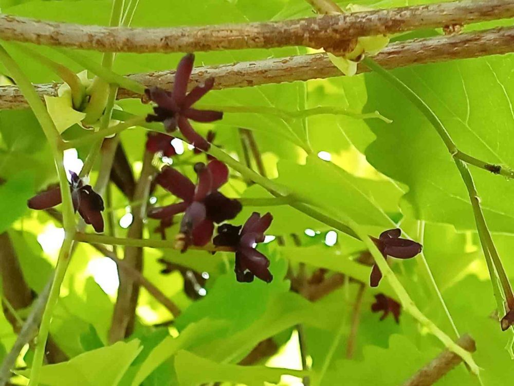 [ミツバアケビ]の花を見つけましたが、花が迚も小さかったので、ビックリです。