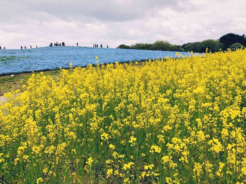 ひたち海浜公園の菜の花とネモフィラの共演