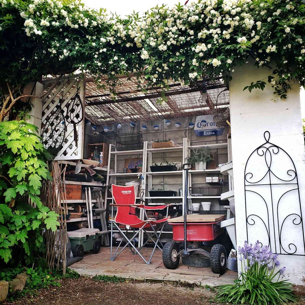 今は花の挿し芽置き場に丁度いい。作業場としてもなかなか快適で満足の仕上がり!