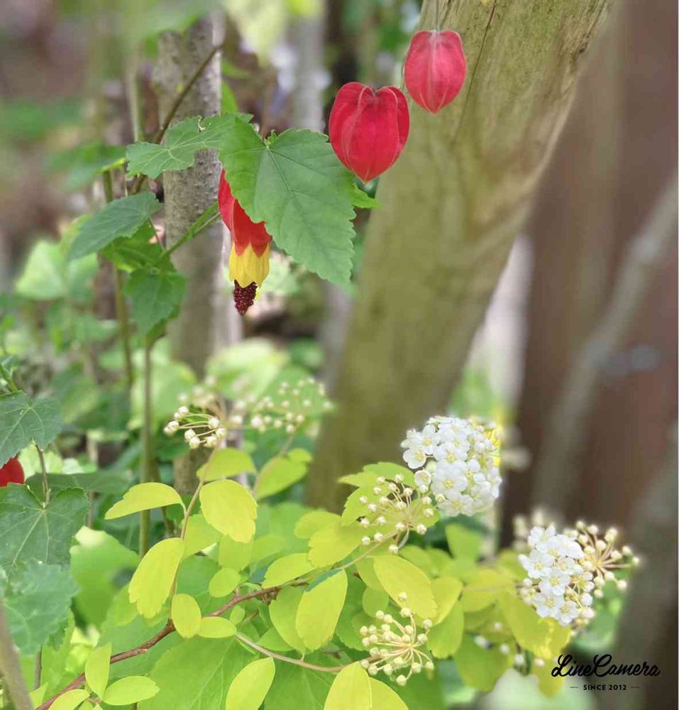 偶然❣うちもコデマリ(普通の緑のw)の横に同じアブチロンが植わってるよ(๑˃ꇴ˂๑)♪