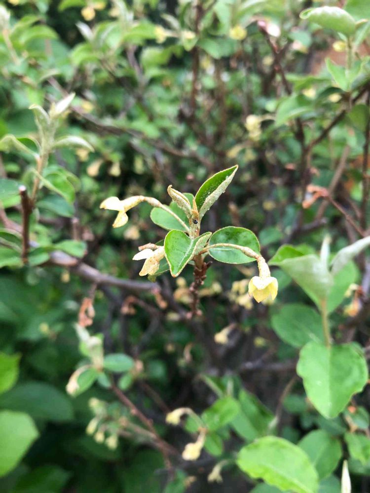 トウグミはナツグミの変種だそうです。両者の違いとして、トウグミの葉の表側には星状毛があるらしいのですが、…よく見えません💦 多分、トウグミ😅