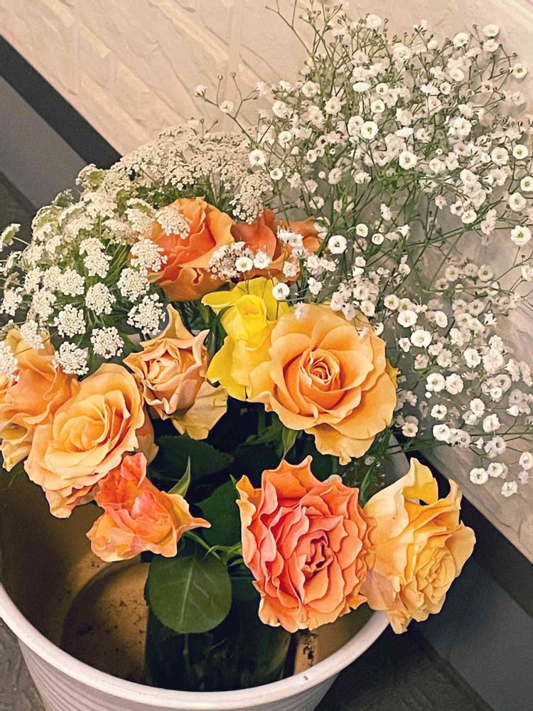 玄関に置いた、薔薇の切り花で一番好きなカルピデューム🧡