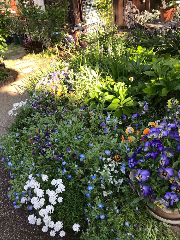 でも、それぞれのお花や植物が春になって大きくなり、雰囲気がますます良い感じですよね〜。かなりの種類のお花が植えられてますよね。きっと、道ゆく人が脚を止めて見てらっしゃると思います。