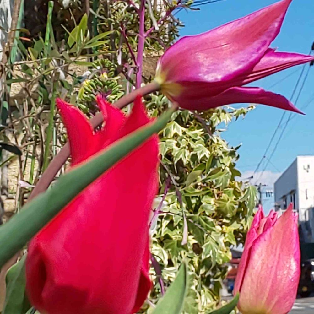 色の濃いチューリップも咲き始めです🌷公道に面している方なので元気色⤴️⤴️