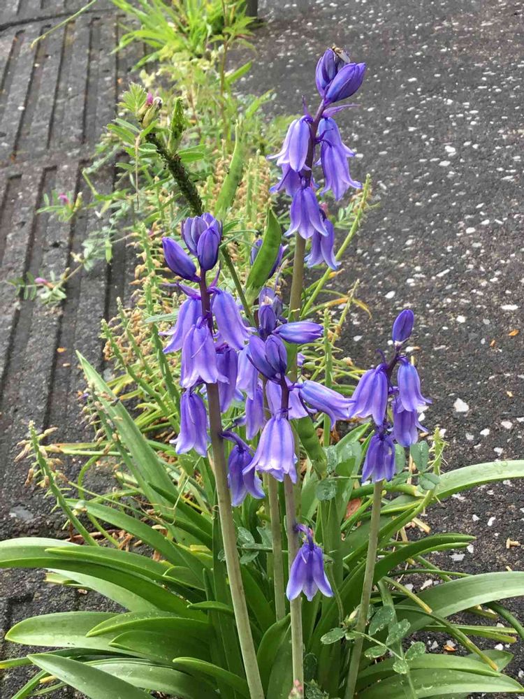 近所にコンクリートの隙間から綺麗な イングリッシュブルーベル💜が咲いていました😊🎵