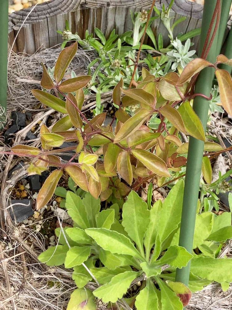 枯れたと思っていたクレマチスが生えて来た(真ん中)