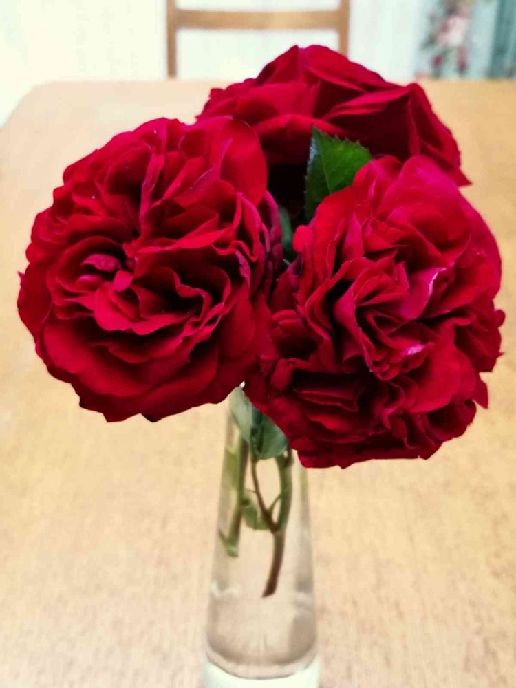 うわぁ、もう三輪も咲いてるんだね✨香りありのバラをお部屋に飾れるなんて本当に素敵✨羨ましいわぁ💕