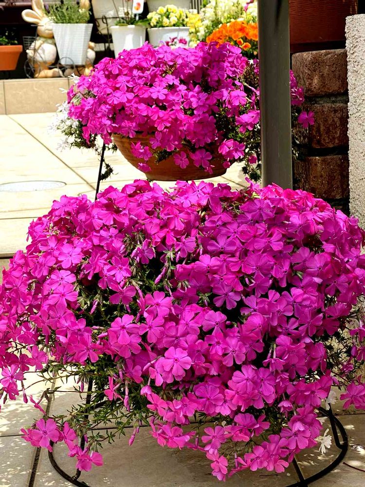 ですよね!私も芝桜は地植えでグランドカバー的な感じの先入観しか無かったのですが、ご近所のお爺さんがピンクと白の芝桜を鉢植えでキレイにされてたのを見て挑戦、実はピンクの後ろに白の芝桜が隠れてるんですが、育つスピードや開花の時期が少しズレてて…💦