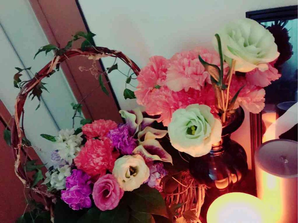 いろんなお花とキャンドルで癒しの時間です🌸💕