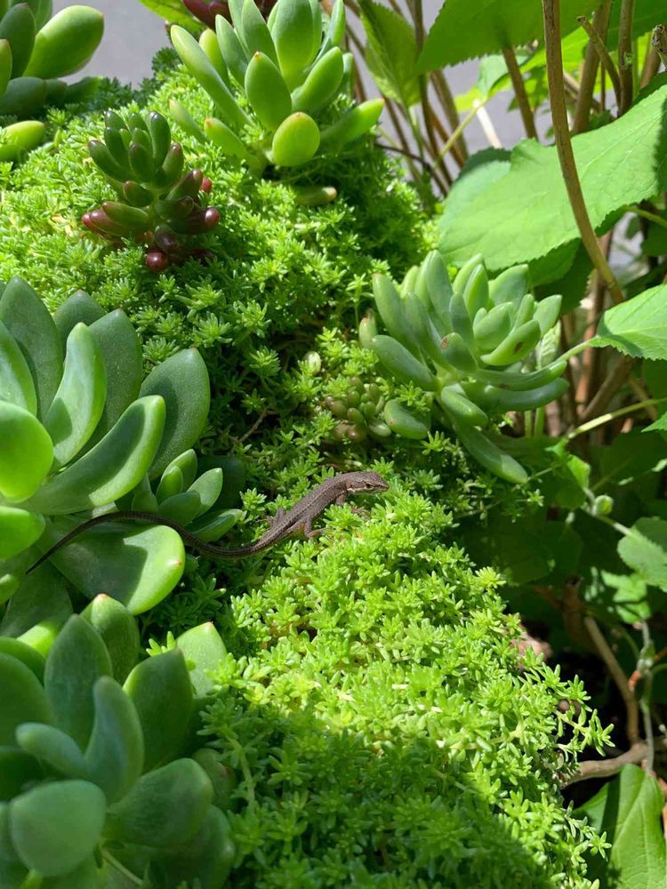 カナヘビさん、置物?おもちゃではなく本物ですね!💦きっと居心地がいいんですね〜😊マンションのベランダには来てくれませんね、カナヘビさん。