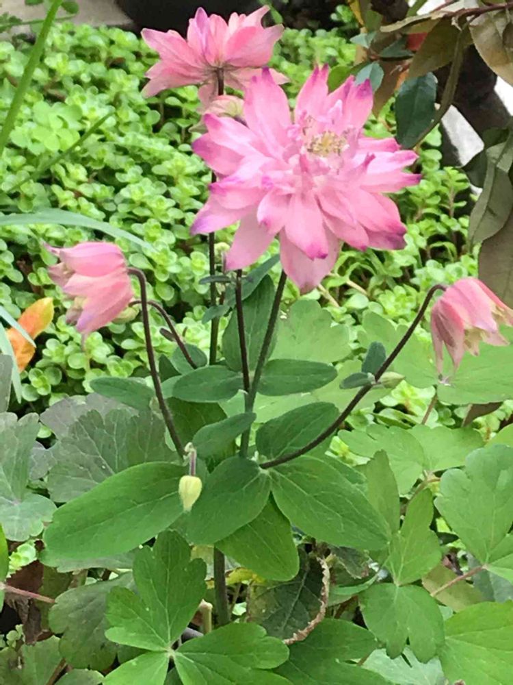 ダリアかと思いましたが、葉っぱが確かにオダマキで、初めて見ました。