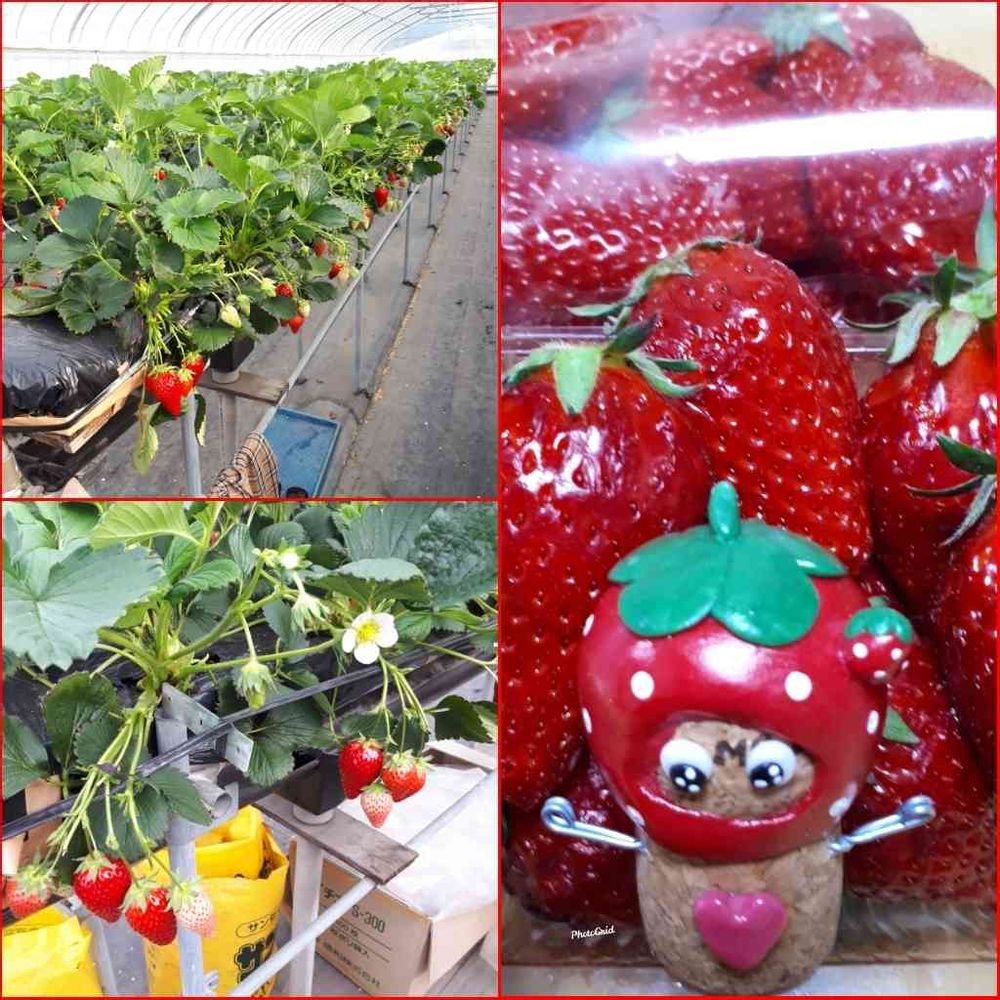 いちごがあちこちに植えられていておじさんに「いちごを撮らせてもらってよいですか?」と言ったら「よいで。」「ここのいちご🍓をとりや」と言われたので📸としてたら「これとり」と大きないちご🍓を指さし「切り取るのではなくて曲げて取るんやで」と言われた。「あのぅカメラ📷で撮るのではなくて実際🍓を取ると言う事ですか?」と言ったら「そうや。これ取り」と大きな🍓を1個渡してくださいました(笑)