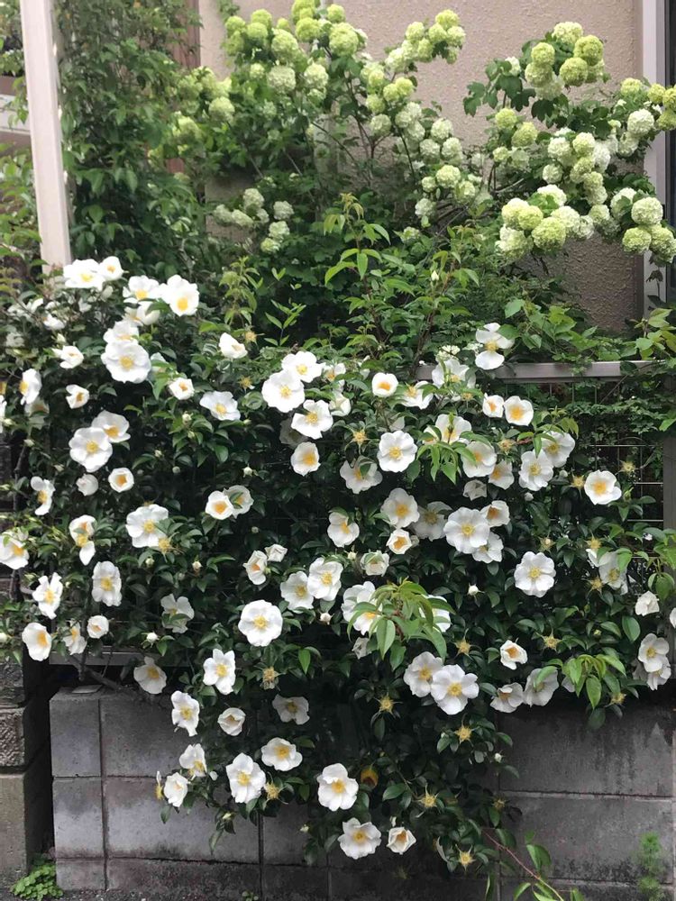満開のナニワノイバラとビバーナムスノーボールのコラボ素敵ですね〜💕