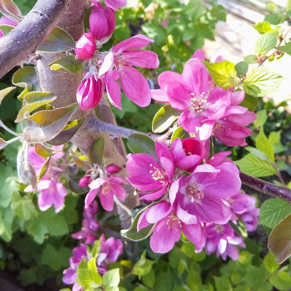 りんごの花といえば白ですが、この品種は濃いピンクなので華やかです(^^)