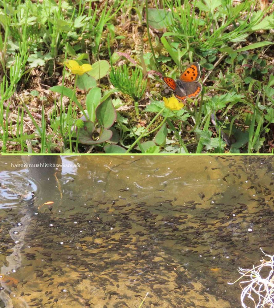 ベニシジミとウマノアシガタ,オタマジャクシの流れ②,里山大好き協会の投稿画像