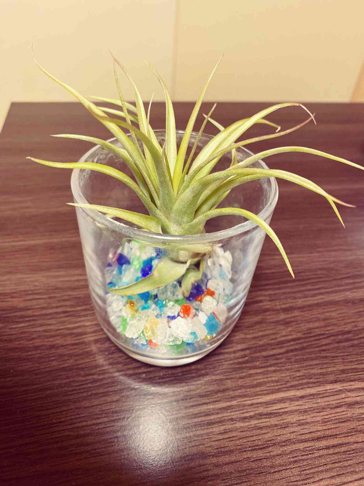 グラスに粒ガラスを入れてその上にちょこんと乗せただけ(笑)