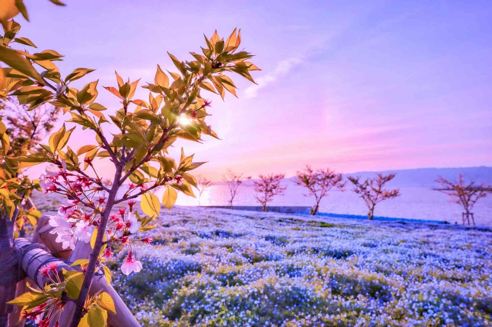 夕暮れの優しい光に染まるネモフィラの海…💙