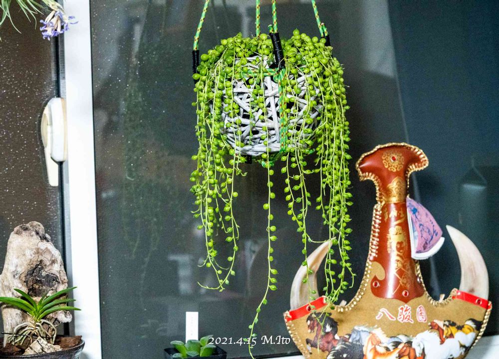 東側の窓・・・ピーチネックレスのプランツハンガーを自作してみました