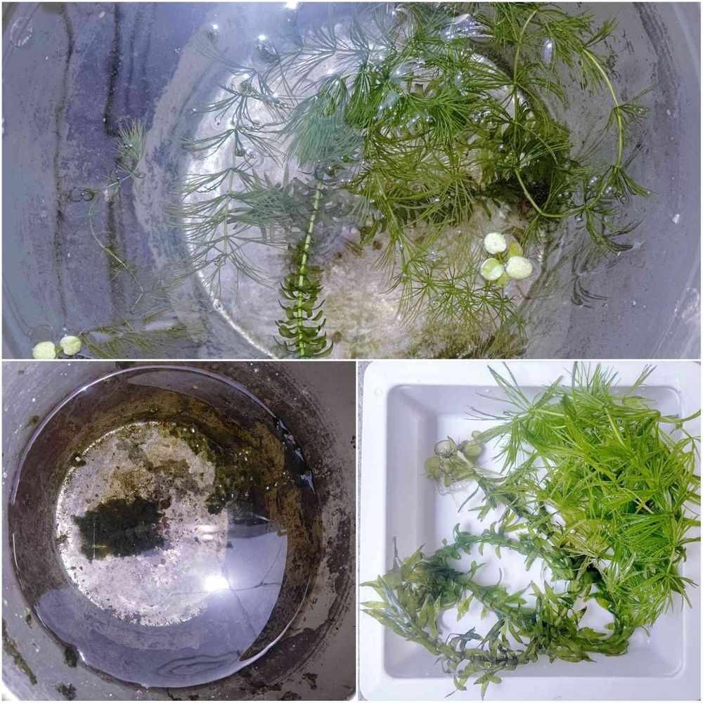 ↙️左下の冬枯れして藻が貯まったバケツを洗い、