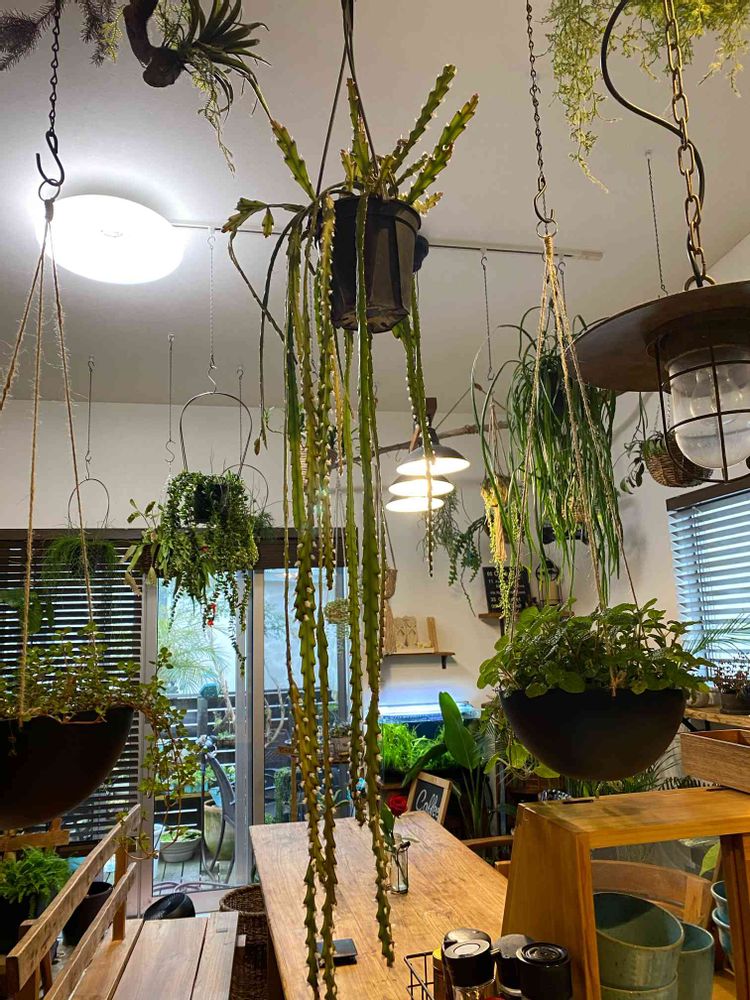 ジャングルインテリア カフェのような植物いっぱいの癒されるインテリアをテーマにしています。ウッドデッキ、リビング、玄関、庭に沢山の植物があります。今は吊り下げ植物にハマっています。よろしくお願いします。