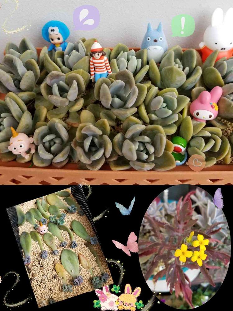 あまり可愛くない多肉チャンに、いっぱいキャラ乗せて、可愛く?してみました🤣🤣