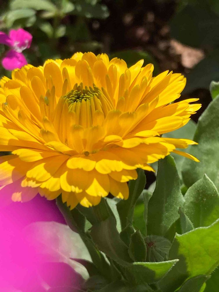 キンセンカ(カレンデュラ),黄色い花,カフェの前での投稿画像