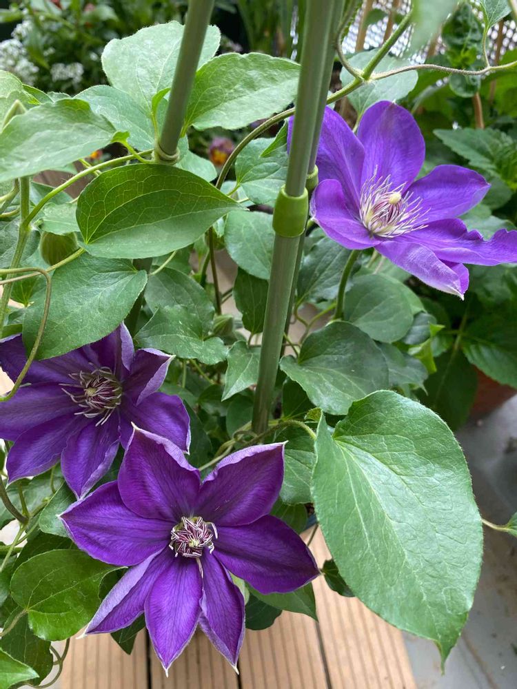このクレマチスも去年の夏、あまり元気がありませんでした😭剪定の仕方も良くわからないし、冬に植え替えした時は地上部は数センチしか無いことになっていました💦