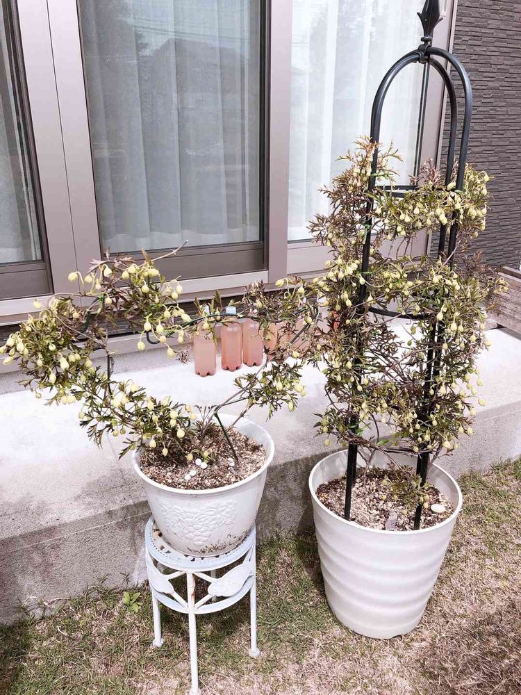 右のオベリスク仕立てのカートマニージョーさんは、2020年1月にお迎えした子ちゃんです🌸