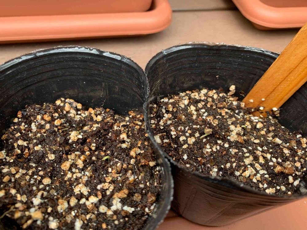ポット4つに3つずつ種まきした結果、今のところ6つ芽が出ました。