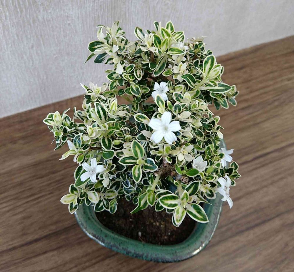 この写真の白丁花は、樹高12cmの盆栽で、何年物かはわかりませんが、挿し木で増やしておく必要がありますね🤩🤍💚😆