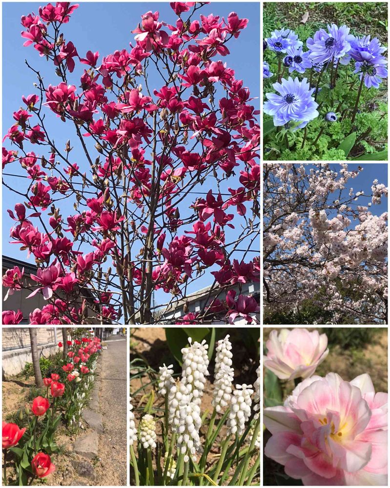 花散歩 明るめのシモクレン 白いムスカリと八重のチューリップ🌷可愛いです💕いいねくださった皆さんすいません🙏同じpicを二枚投稿しました一枚削除します