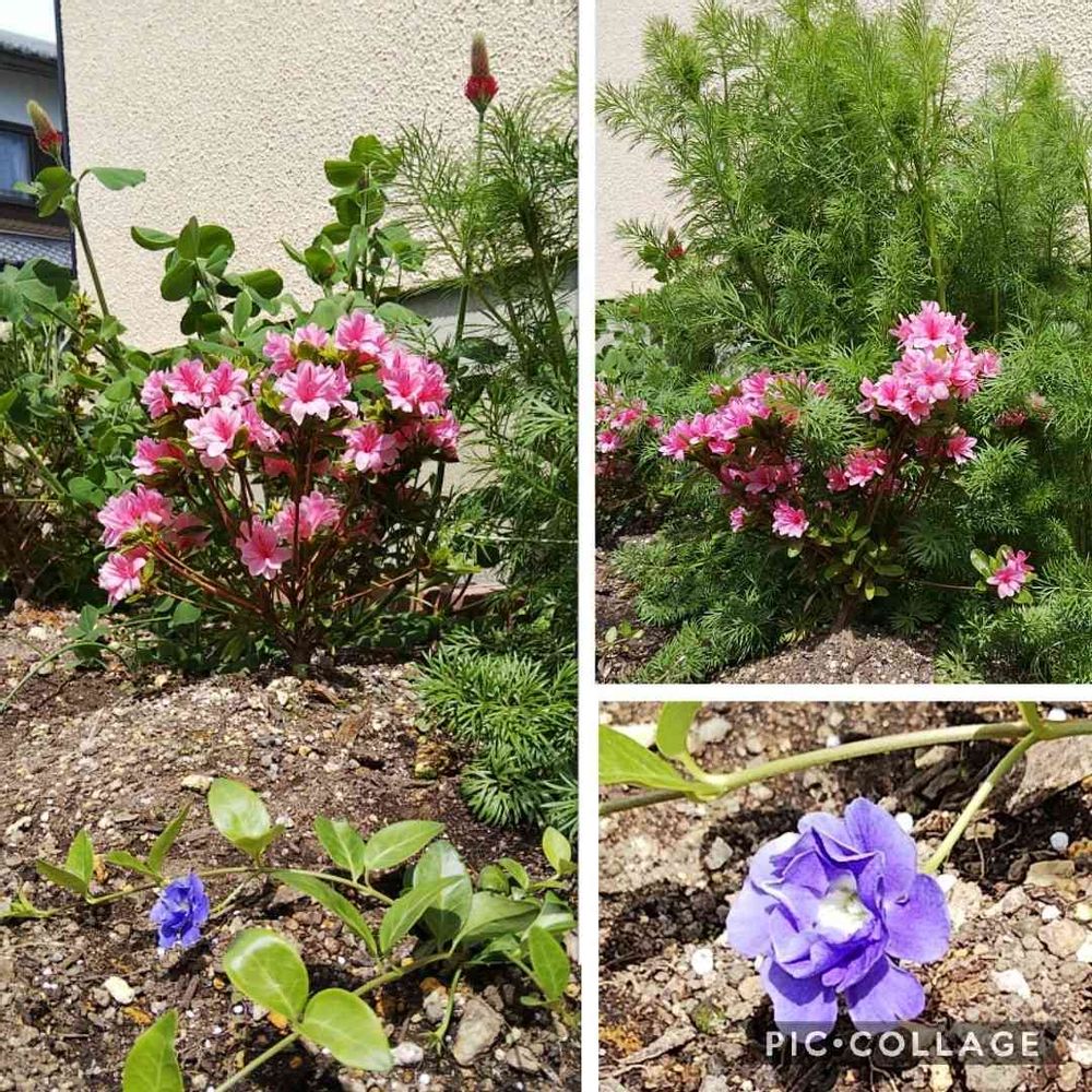 今日のお花のニゲラに、飲み込まれそうになっている久留米ツツジです😂💦