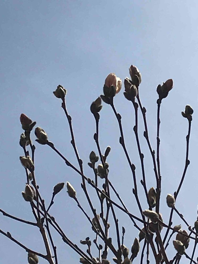 ヒメコブシの花も、もふもふを脱ぎ捨てようと❣️
