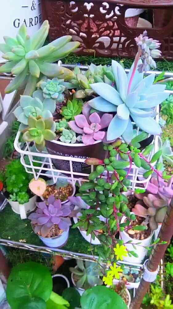 台風が近づいている中で、ルビネさん❤が黄色いお花を咲かせて、まるで台風がきても大丈夫だよ❗って言っているみたいで愛おしい我が家の多肉ちゃんたちです✨
