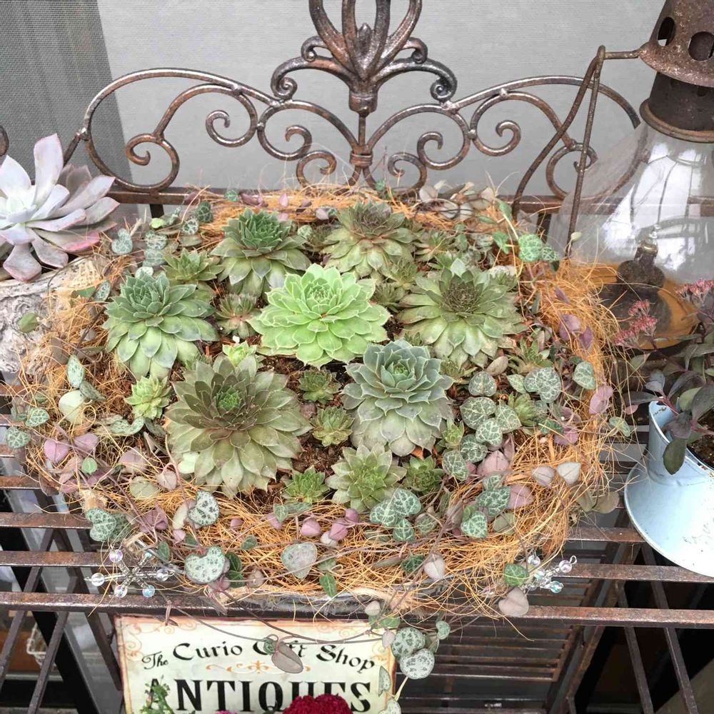 私も真似っこしたの。近所の花屋さんにすごくお安く売ってるの見かけていたから、即買いに走ったよ!とにかくハートの♥️葉っぱ同士が絡んで株分けするのが大変でした(^^)
