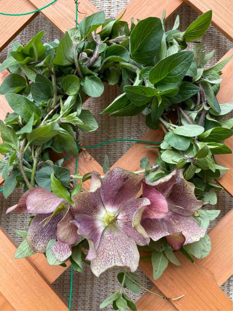 あまりにもオレガノが広がっていて時々引っこ抜いてポイ❗️してるんやけどダメ元で小さいリースにしてみたんよ😂