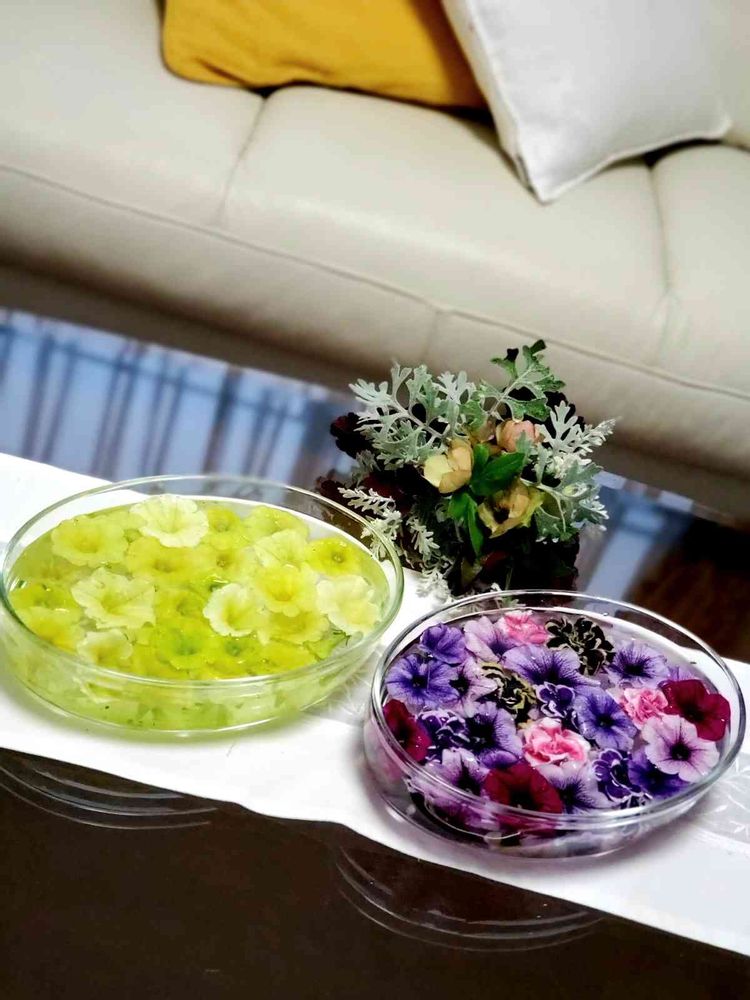 水に浮かべて、こんなにお洒落に飾ってもらえるなんて、ペチュニアさん達も喜んでます❣️