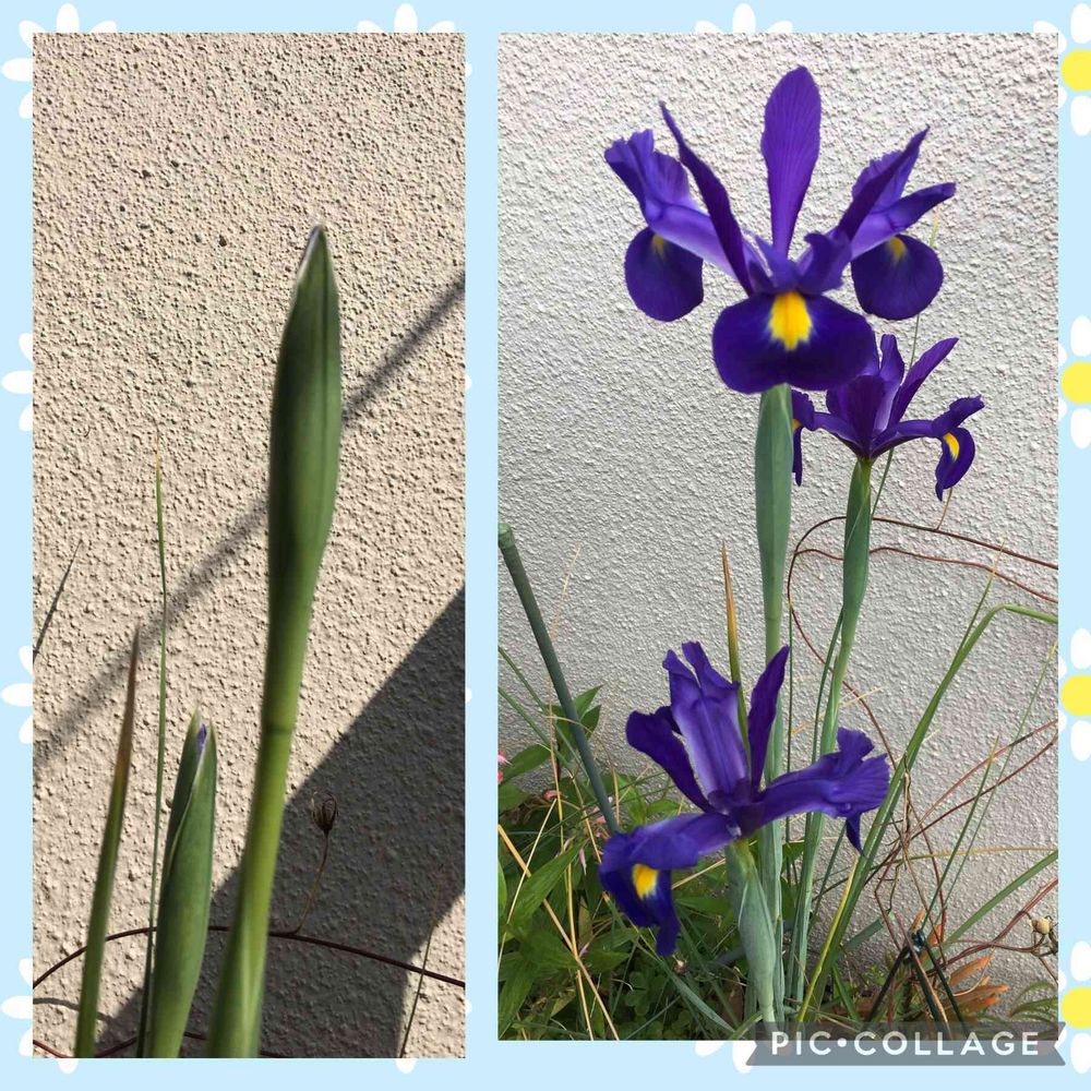 金曜日の蕾達に出そうとしていたら1日雨☔️で見てないうちに開いてしまいました。蕾と花ですが、もったいないので出させていただきます。^o^。ベランダで咲いたアイリス4本の内3本。